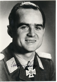 Major Wolf Dieter Huy, JG 77 - Knights Cross w/oakleaves. 40 Victories. Includes mailing envelope and TLS in German.